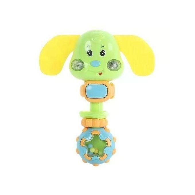 ج.مفيل مع ضوء خشخيشة وعضاضة مع ضوء وموسيقى اللعبة التي يحبها جميع الأطفال كثيرًا وهي عبارة عن خشخيشة تضيء وتصدر موسيقى مختلفة في كل مرة يضغط فيها الطفل على الزر في المنتصف كما أن آذان الفيل عبارة عن عضاضات مناسبة من عمر 3 أشهر