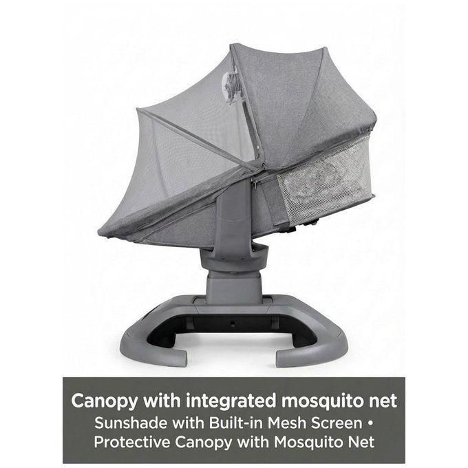 ج.موفري لطفلك الراحة المثالية مع ماستيلا أوري يوفوريا 3D، الأرجوحة الكهربائية المتطورة اللي بتعمل حركات انسيابية طبيعية زي شيل الإيد بالظبط. الكرسي بيتميز بخاصية الدوران 360 درجة، يعني هتقدري تلفي وش البيبي ليكي في أي اتجاه بسهولة من غير ما تحركي الجهاز نفسه. الجهاز مزود بلوحة تحكم تاتش وكمان تحكم عن طريق الموبايل (App Control)، عشان تتحكمي في السرعات والتايمر والأغاني وانتي في مكانك.