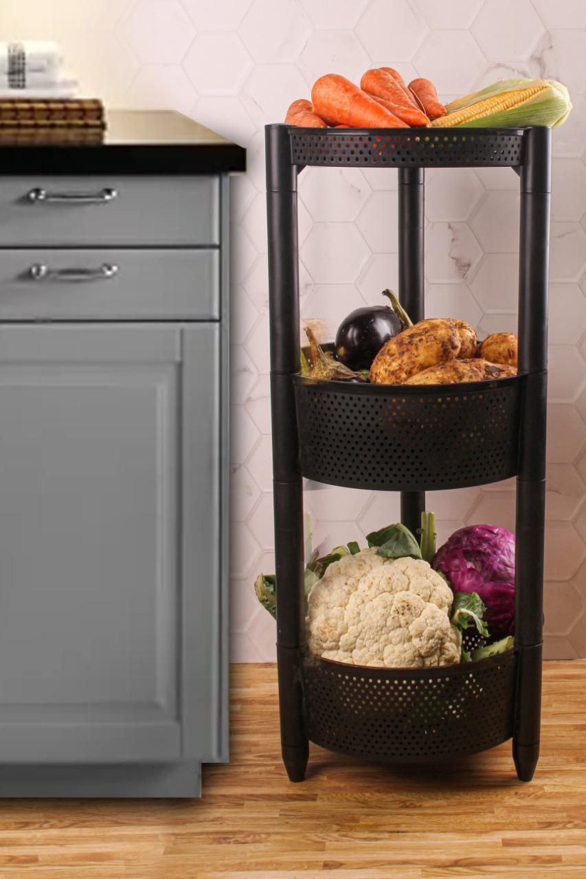 سلة تخزين المطبخ 3 دور هي الحل المثالي لتخزين الفواكه والخضروات خارج الثلاجة، تتميز بجودة عالية ومادة مقاومة للصدمات، مما يجعلها الخيار الأمثل لأي مطبخ.