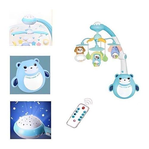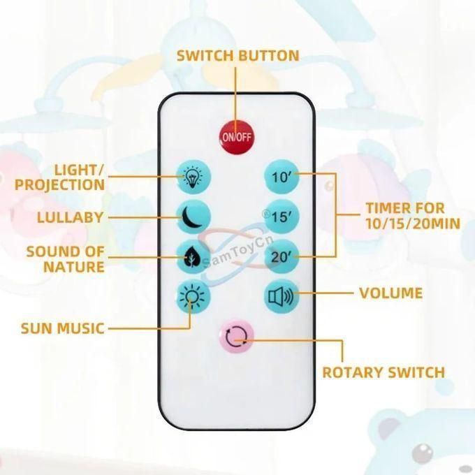 الموبايل فيه ألوان مبهجة، موسيقى هادية، وإضاءة ناعمة تساعد طفلك ينام بسرعة، وكمان فيه ألعاب متدلية بتشد انتباهه وتخليه يتحرك ويكتشف.