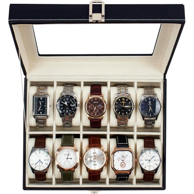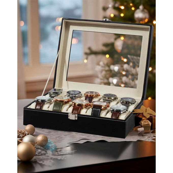 - تصميم أنيق: يوفر حلاً مثالياً لتخزين الساعات مع فتحات متعددة لحمل وعرض ساعاتك بأمان.