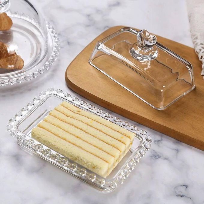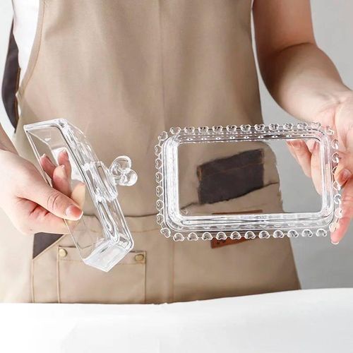 طبق زجاجي للزبدة والجبن هو الحل المثالي لتخزين وتقديم الزبدة والجبن بطريقة أنيقة وعملية. يتميز بتصميم مزدوج الغرض، مما يجعله مناسباً للاستخدام اليومي.