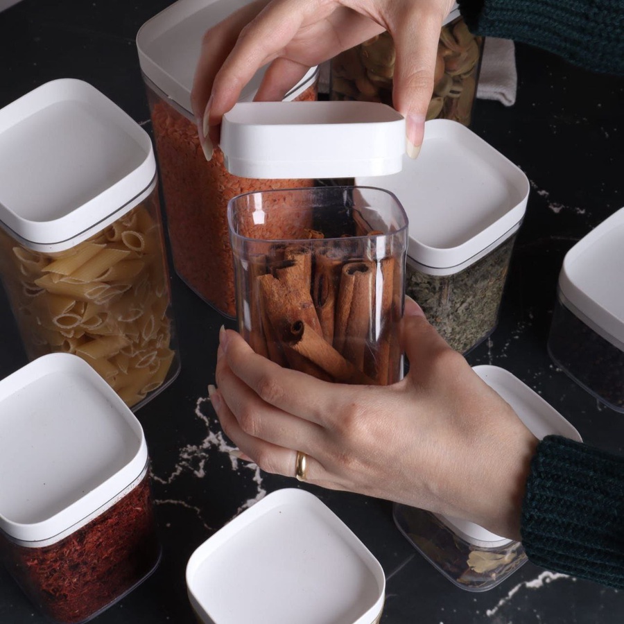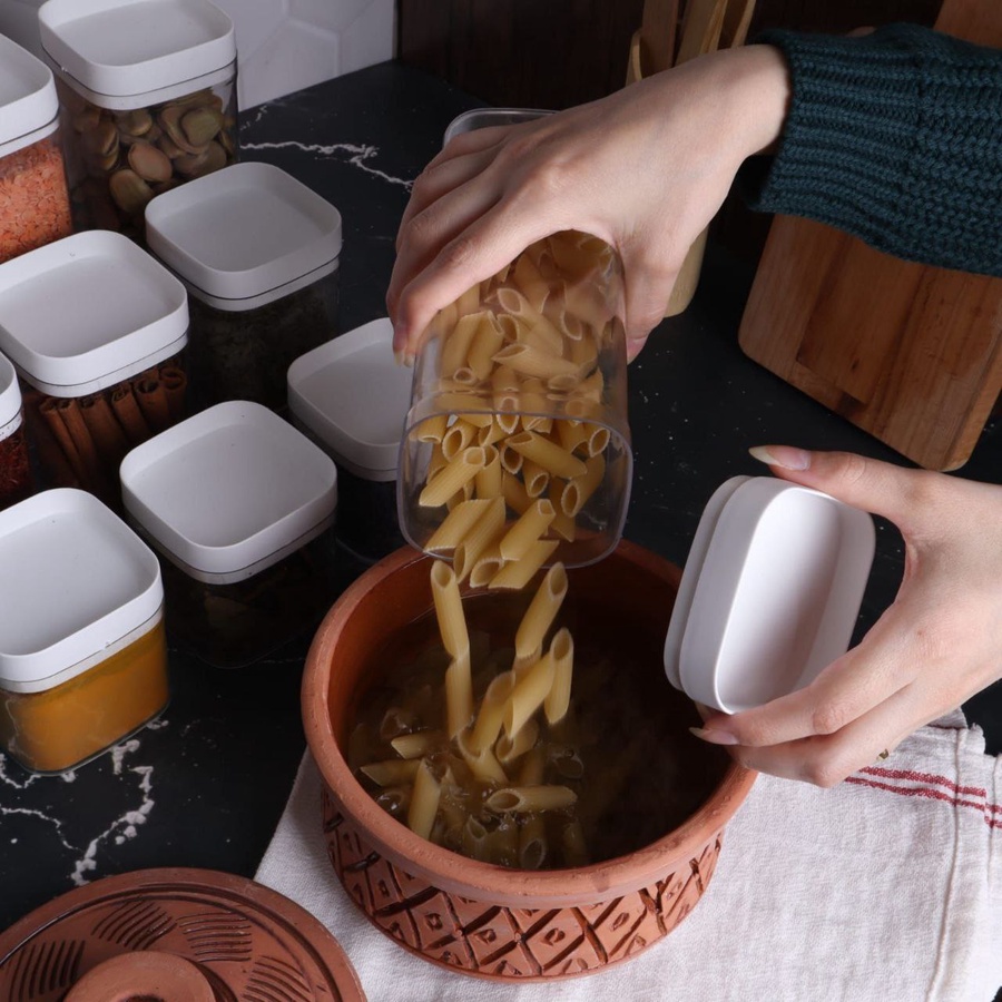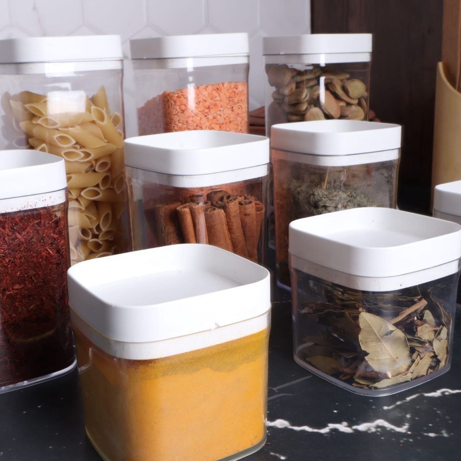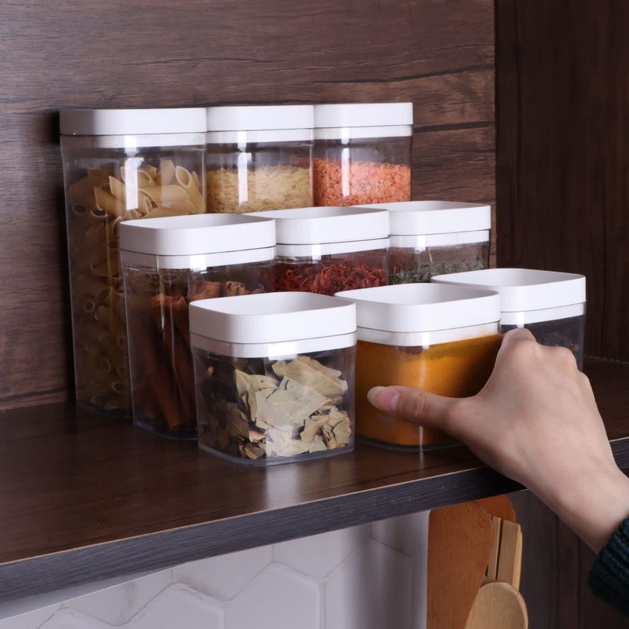ج.محافظي على مطبخك منظم وأنيق مع طقم علب التخزين المكون من 9 قطع، المصمم خصيصًا لتخزين البقوليات، السكر، البن، الشاي وغيرها من الاستخدامات اليومية. يتكون الطقم من 3 أحجام مختلفة (صغير – متوسط – كبير) لتلبية جميع احتياجاتك، مع أغطية محكمة الغلق للحفاظ على المحتويات طازجة وآمنة من الرطوبة. تصميم عملي وعصري يساعدك على ترتيب مطبخك بشكل مثالي ويوفر المساحة.