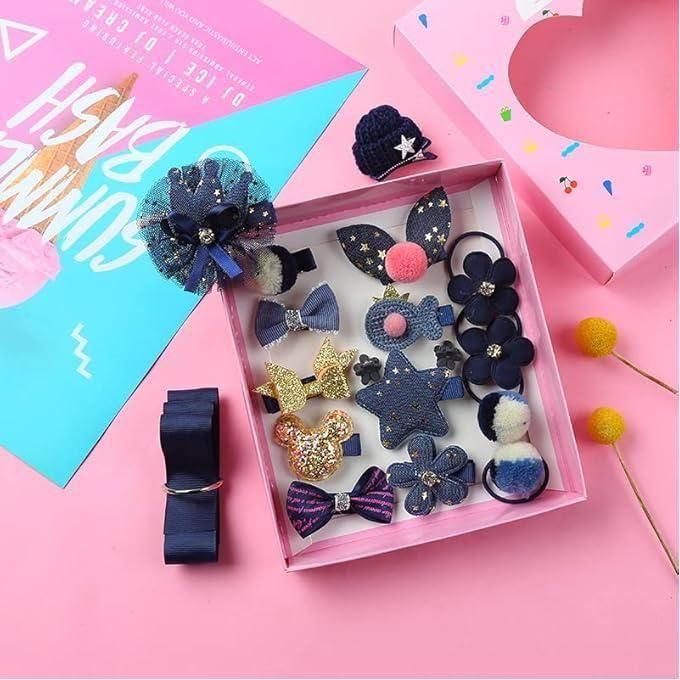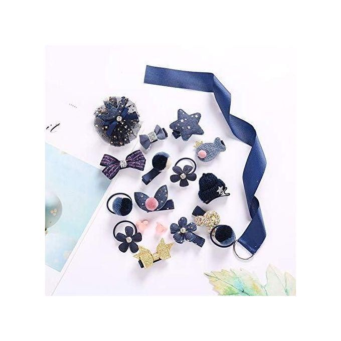 مجموعة إكسسوارات شعر للأطفال تتكون من 18 قطعة، تشمل مشابك شعر زرقاء داكنة وتصاميم متنوعة، مثالية للفتيات الصغيرات. تقدم هذه المجموعة أسلوبًا متنوعًا يناسب مختلف تسريحات الشعر والمناسبات.