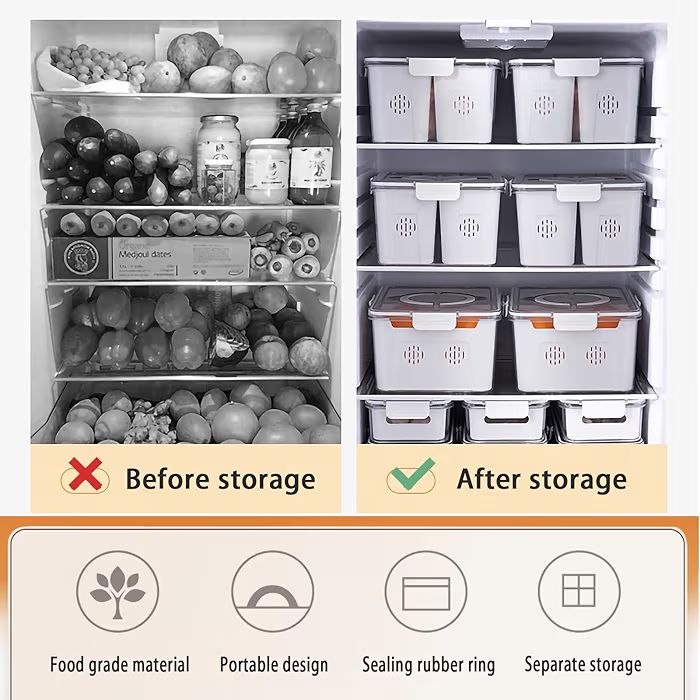 الخانات قابلة للفصل بسهولة، وده بيديك حرية استخدام البوكس بالكامل حسب احتياجك. تصميم محكم يحافظ على المحتويات طازجة وآمنة لفترة أطول.