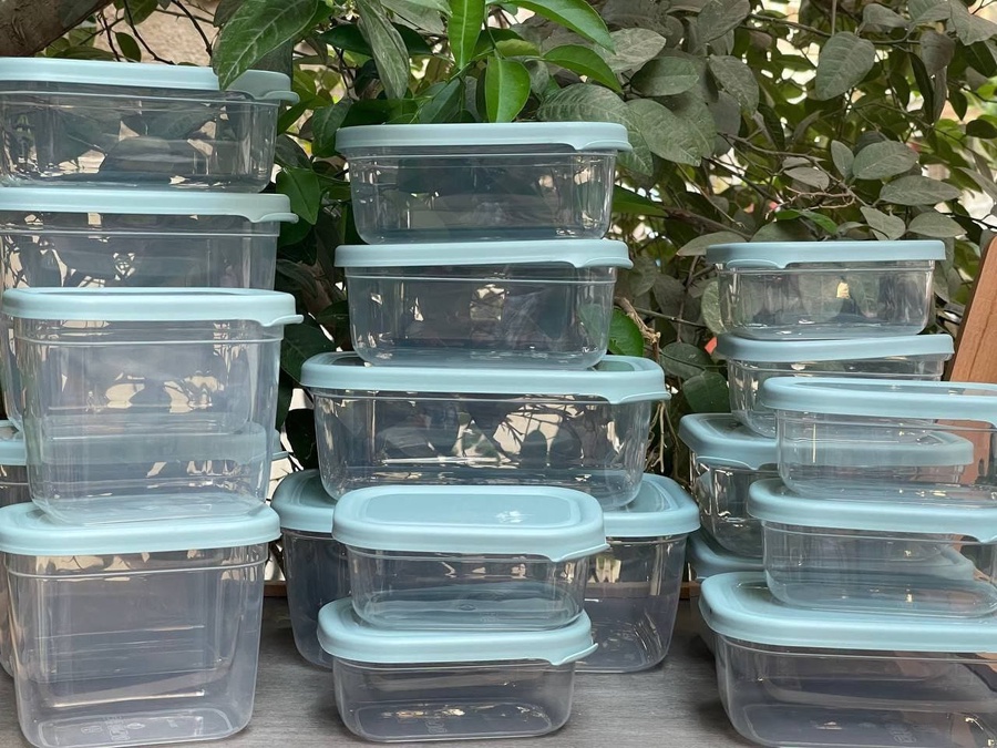 مصنوع من بلاستيك آمن على الصحة وصديق للبيئة (Eco Friendly)، مع أغطية محكمة الغلق للحفاظ على الطعام طازج لأطول فترة ممكنة.