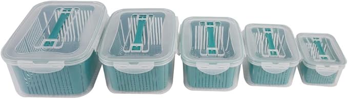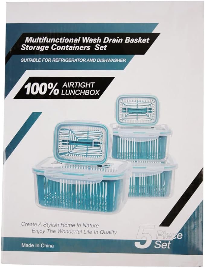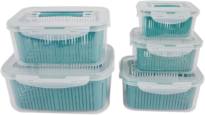 【سعة كبيرة وكمية وفيرة】: تكفي هذه المجموعة المكونة من 5 قطع تمامًا لتخزين الطعام اليومي للعائلة، من الفواكه الصغيرة مثل الكرز والتوت والفراولة والطماطم، إلى الخضراوات الكبيرة مثل البروكلي والسبانخ والبقدونس والذرة، وهي مثالية أيضًا للسلطات.