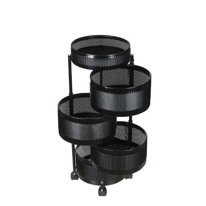 عربة مطبخ تاربو الدائرية مصممة لتوفير مساحة وتنظيم أدوات المطبخ، مصنوعة من معدن عالي الجودة ومغلفة باللون الأسود لمقاومة الصدأ والمتانة. توفر هذه العربة حلاً مثالياً لتخزين التوابل والأدوات الأساسية في مطبخك.