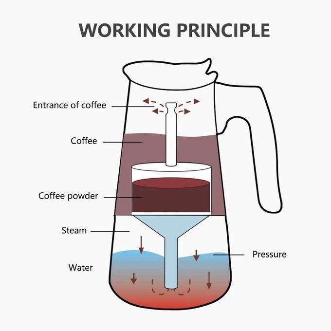 - طريقة عمل تقليدية: يعتمد تصميمها على مبدأ الموكا الكلاسيكي، حيث يتم تسخين الماء وتحويله إلى بخار لاستخراج القهوة.