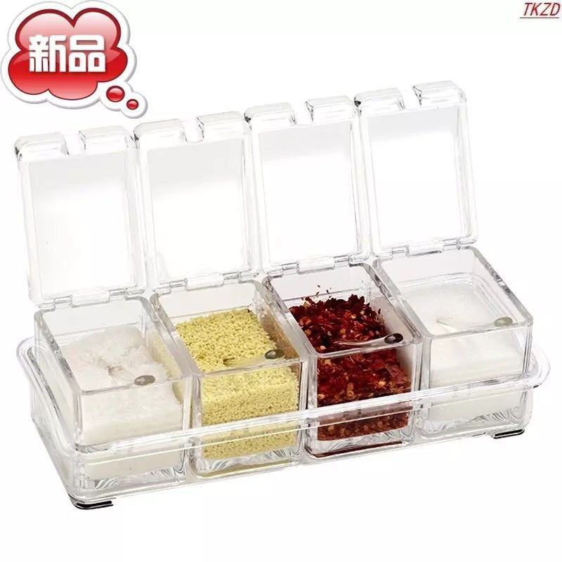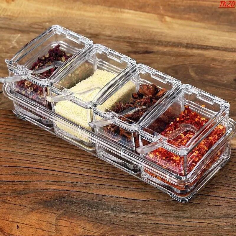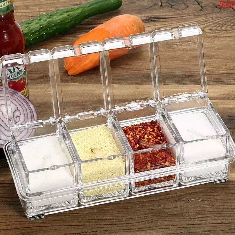 ج.مرتّبي مطبخك بشكل أنيق وعملي مع طقم توابل أكريليك كريستال المميز. الطقم مكون من 4 علب توابل مع ملاعق مخصصة وحامل منظم لسهولة الاستخدام والوصول.