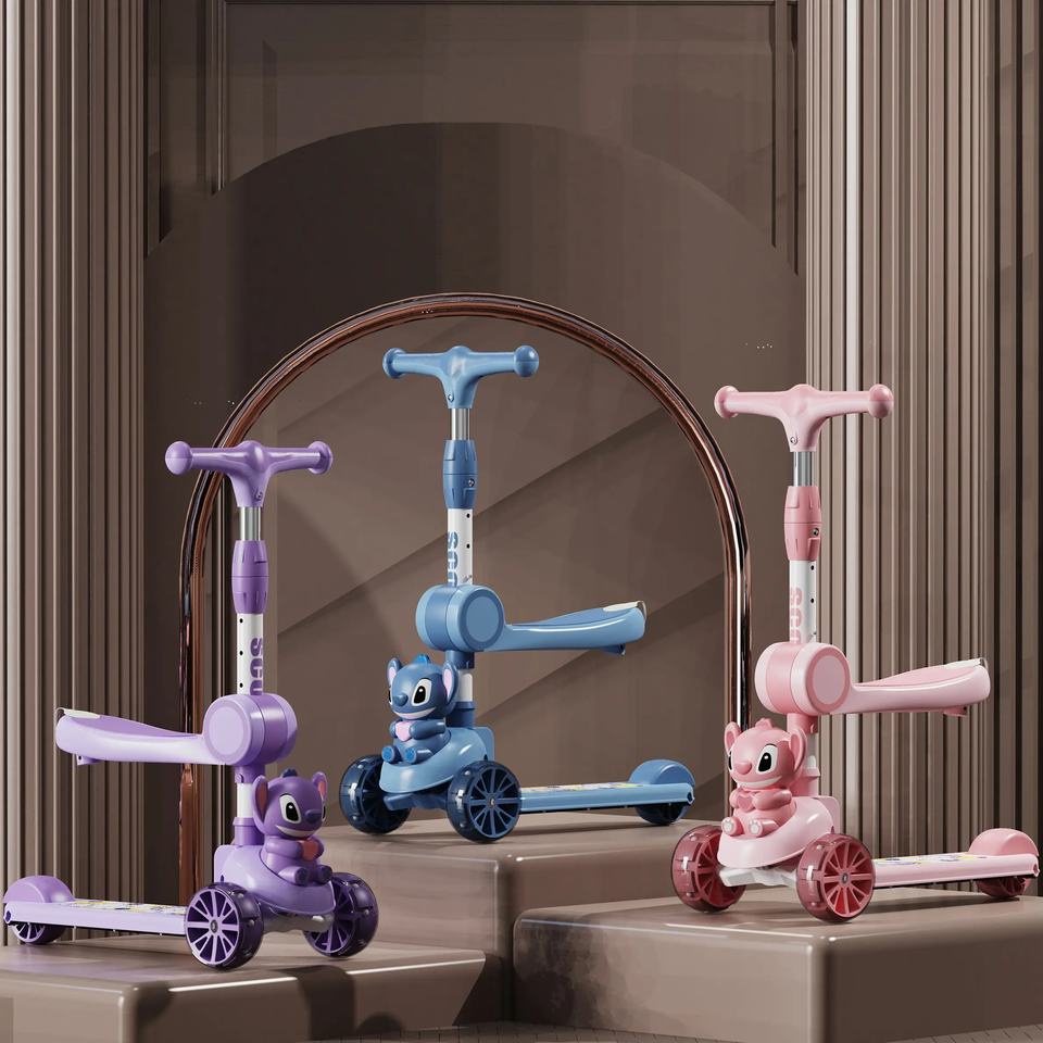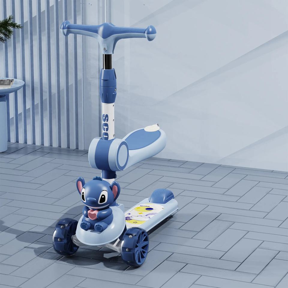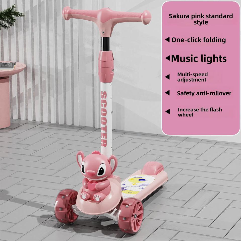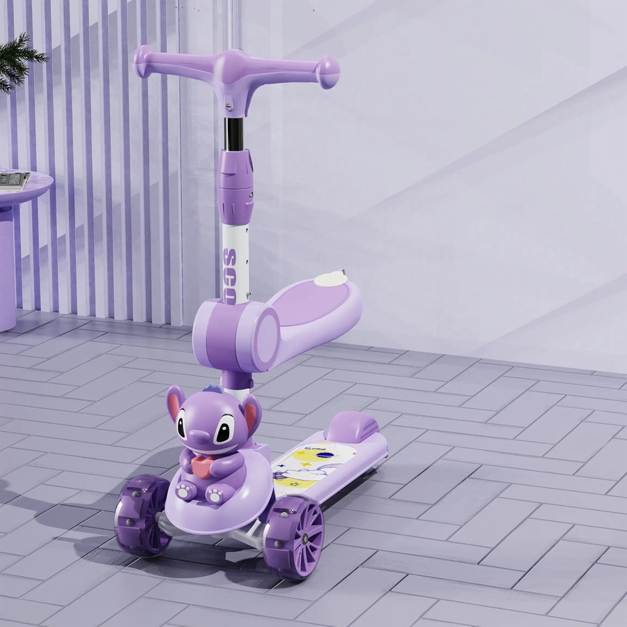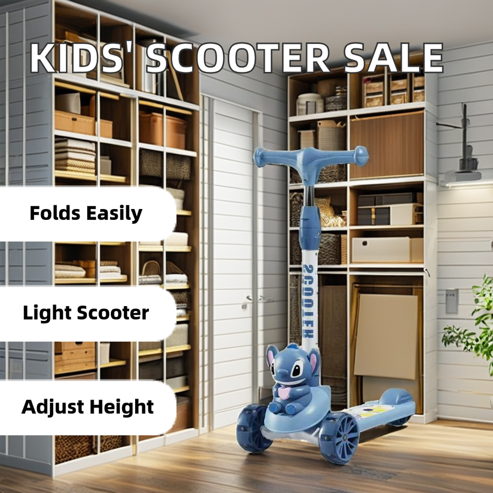 ج.مخلي طفلك يستمتع بوقته مع سكوتر الأطفال بتصميم كرتوني لطيف. مزود بإضاءة LED جذابة تضيف متعة أثناء اللعب. السكوتر خفيف الوزن وقابل للطي، سهل الحمل والتخزين في أي مكان. مصنوع من خامات متينة وآمنة لضمان ثبات وأمان الطفل أثناء الاستخدام داخل أو خارج المنزل.