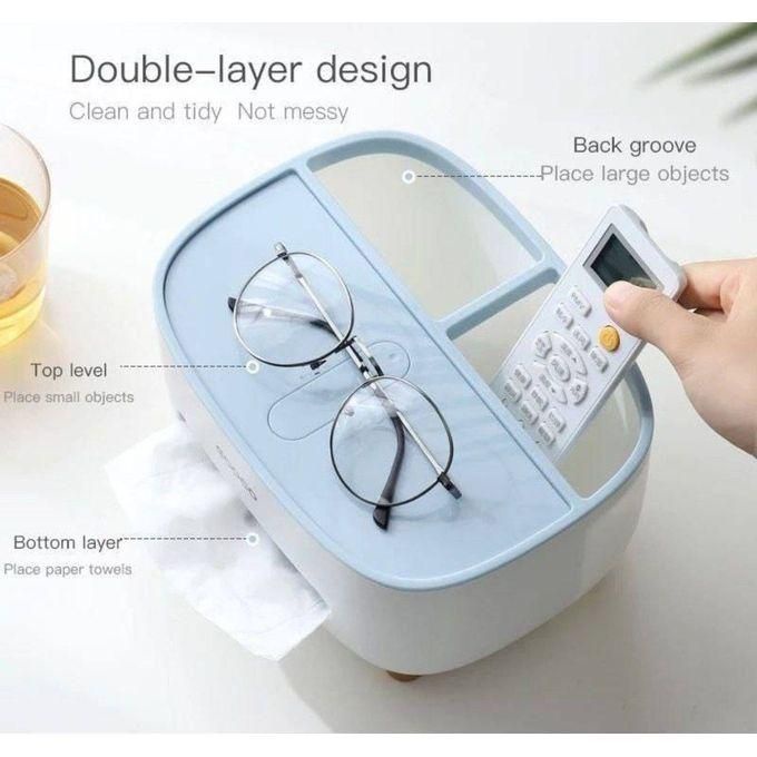 - تصميم أنيق وجديد: يساعد على إخفاء المظهر الممل لصندوق المناديل العادي وتنظيم الأدوات الصغيرة.