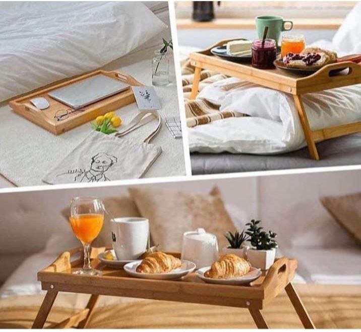 ج.ماستمتعي بتجربة فطار مريحة وأنيقة مع صينية الفطار الخشب المصنوعة من خامة البامبو عالية الجودة. تصميم عملي بيدين لسهولة الحمل، مع أرجل قابلة للطي لتحويلها لترابيزة فطار مثالية للاستخدام في السرير أو على الكنبة.
